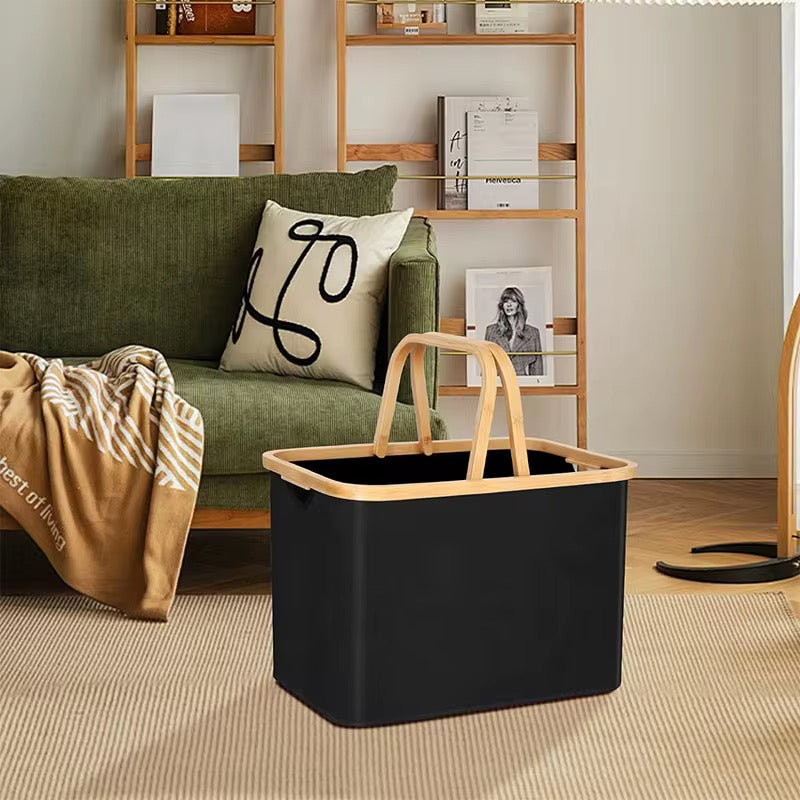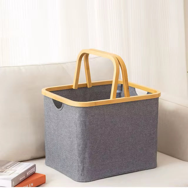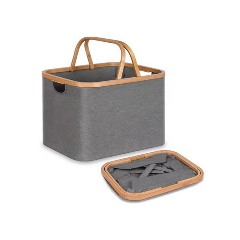 Складная корзина для белья и хранения. Материал: Ткань из бамбуковой рамой и ручками. Подходит для хранения белья, игрушек, одежды и других предметов.